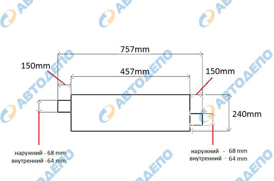 Описание: L-457хD-240mm, труба смещена- D67/63x150mm